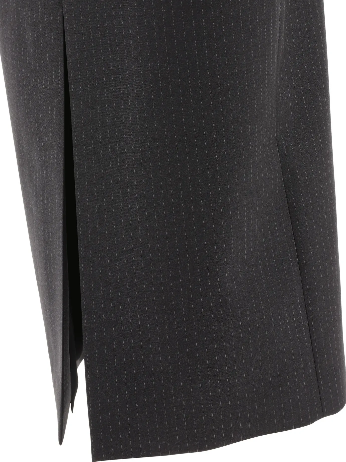 The Alexander McQueen Wool Midi Skirt stands out as a piece that perfectly balances timeless elegance with modern details. Its pinstripe design exudes professionalism, while the front slit adds a contemporary touch that makes this skirt more than just a basic wardrobe staple. The quality wool fabric not only provides a luxurious feel but also keeps you comfortable in cooler weather, making it a must-have for the fall and winter months.