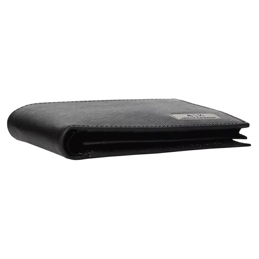 Made with premium materials and meticulous craftsmanship, this Armani Exchange wallet is designed to last. Its minimalist black design exudes elegance, making it a versatile accessory for any season, especially fall and winter. Thoughtfully constructed with inside compartments, it offers ample space for your cards, cash, and IDs while maintaining a slim profile.