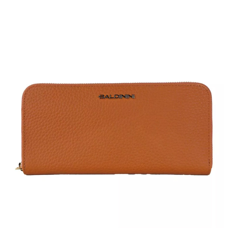 Baldinini Trend Orange Leather Wallet with Zipper Closure and Logo