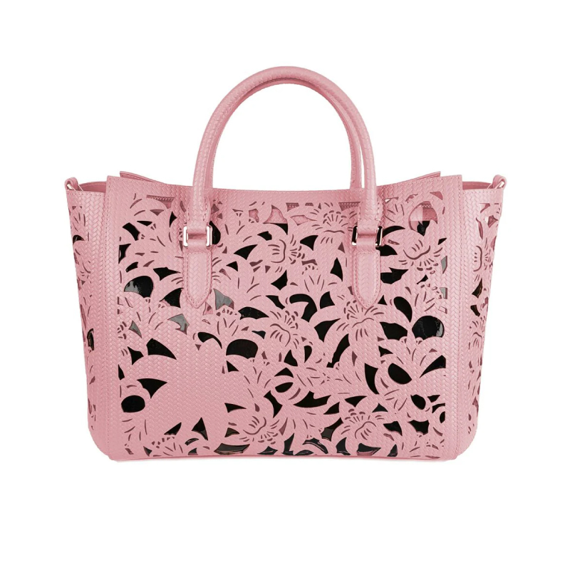 Be the first to review “Baldinini Trend Pink Calfskin Handbag with Floral Laser-Cut Design”