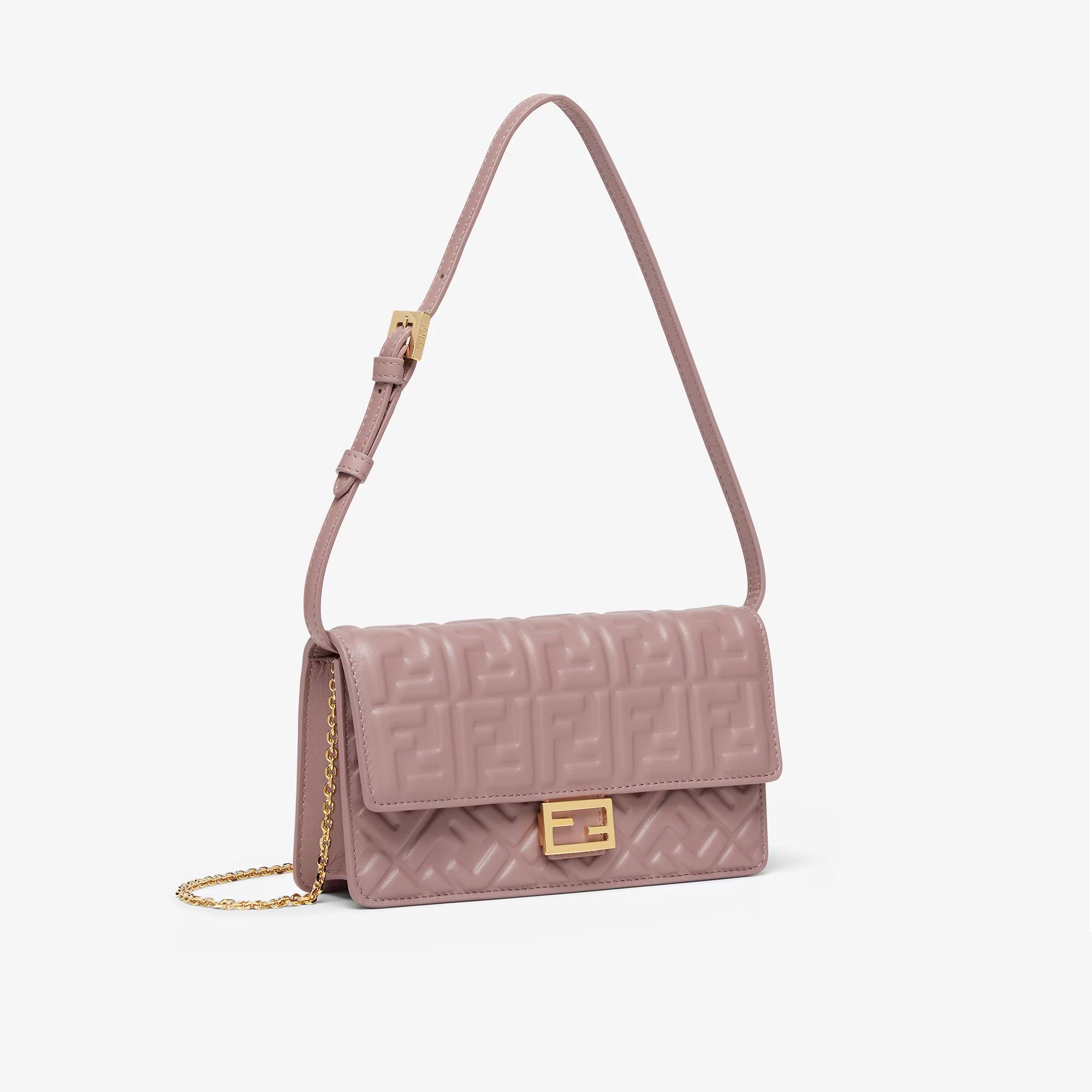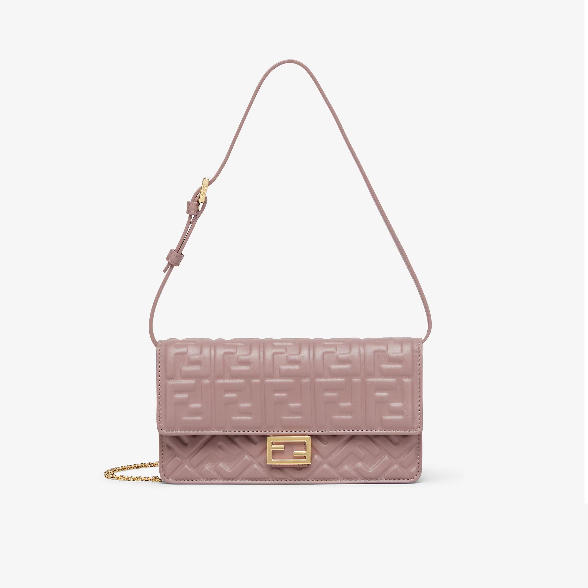 Fendi Calfskin Matisse Chain Wallet with Gold Chain and Iconic FF Logo