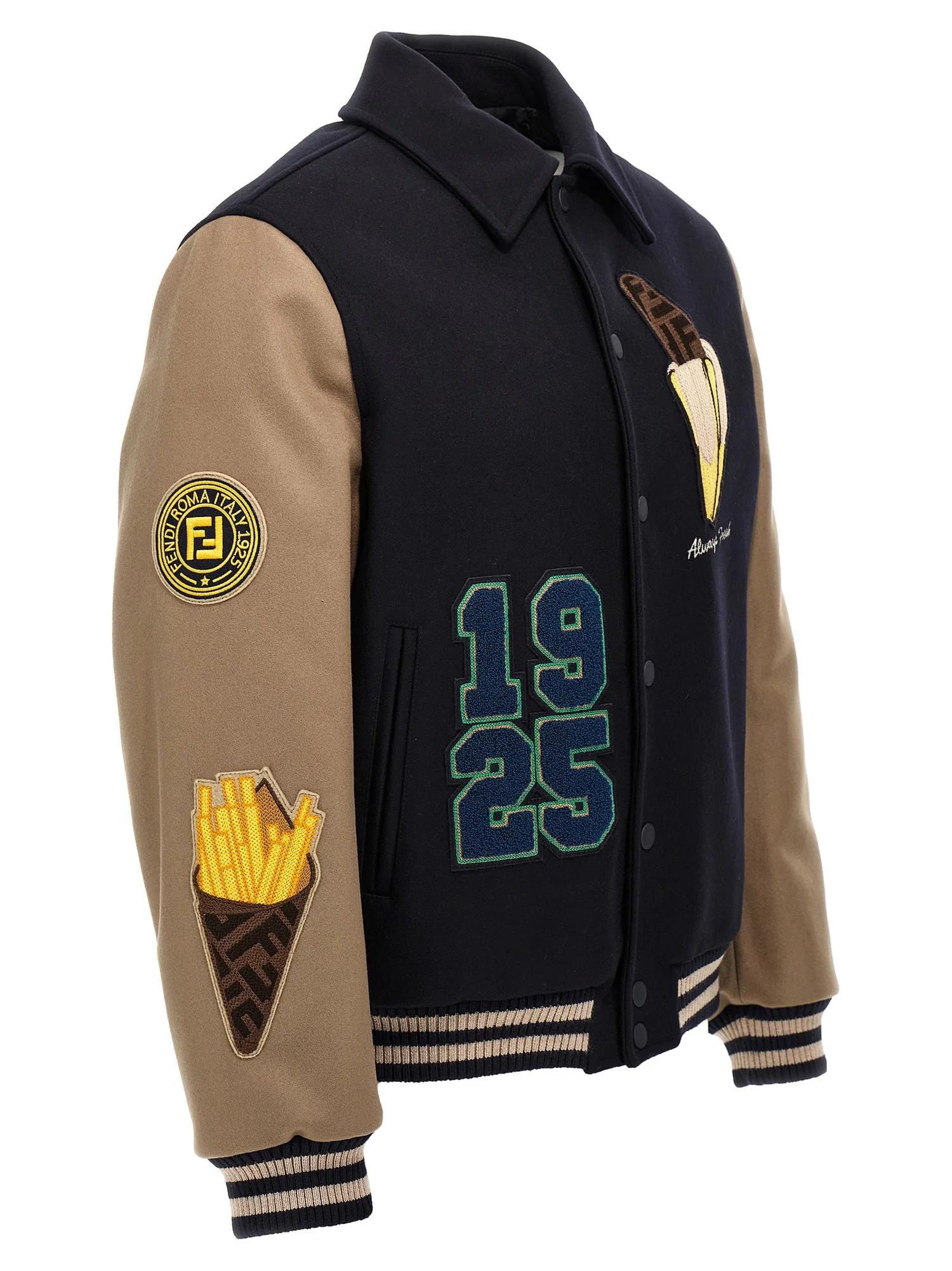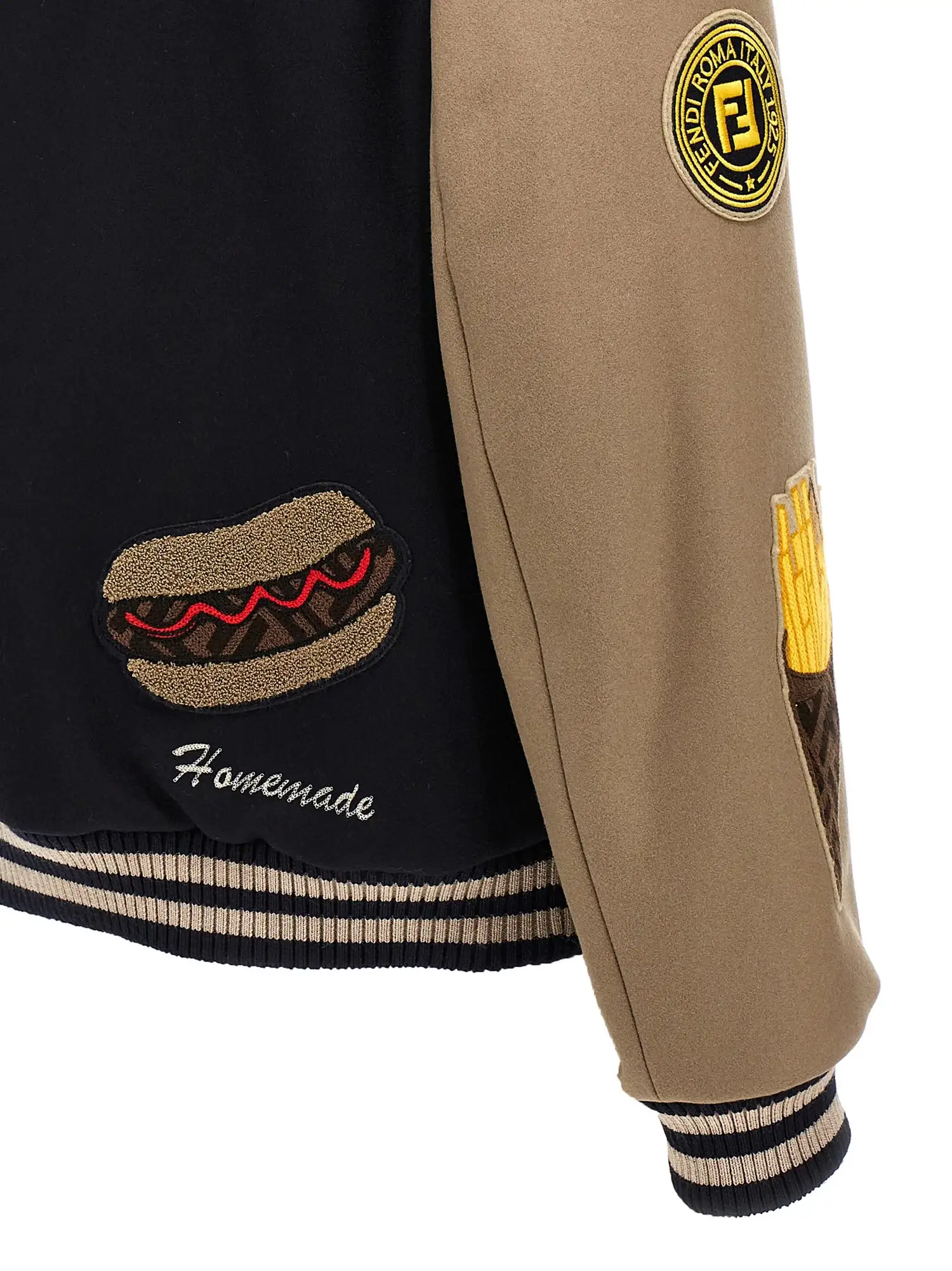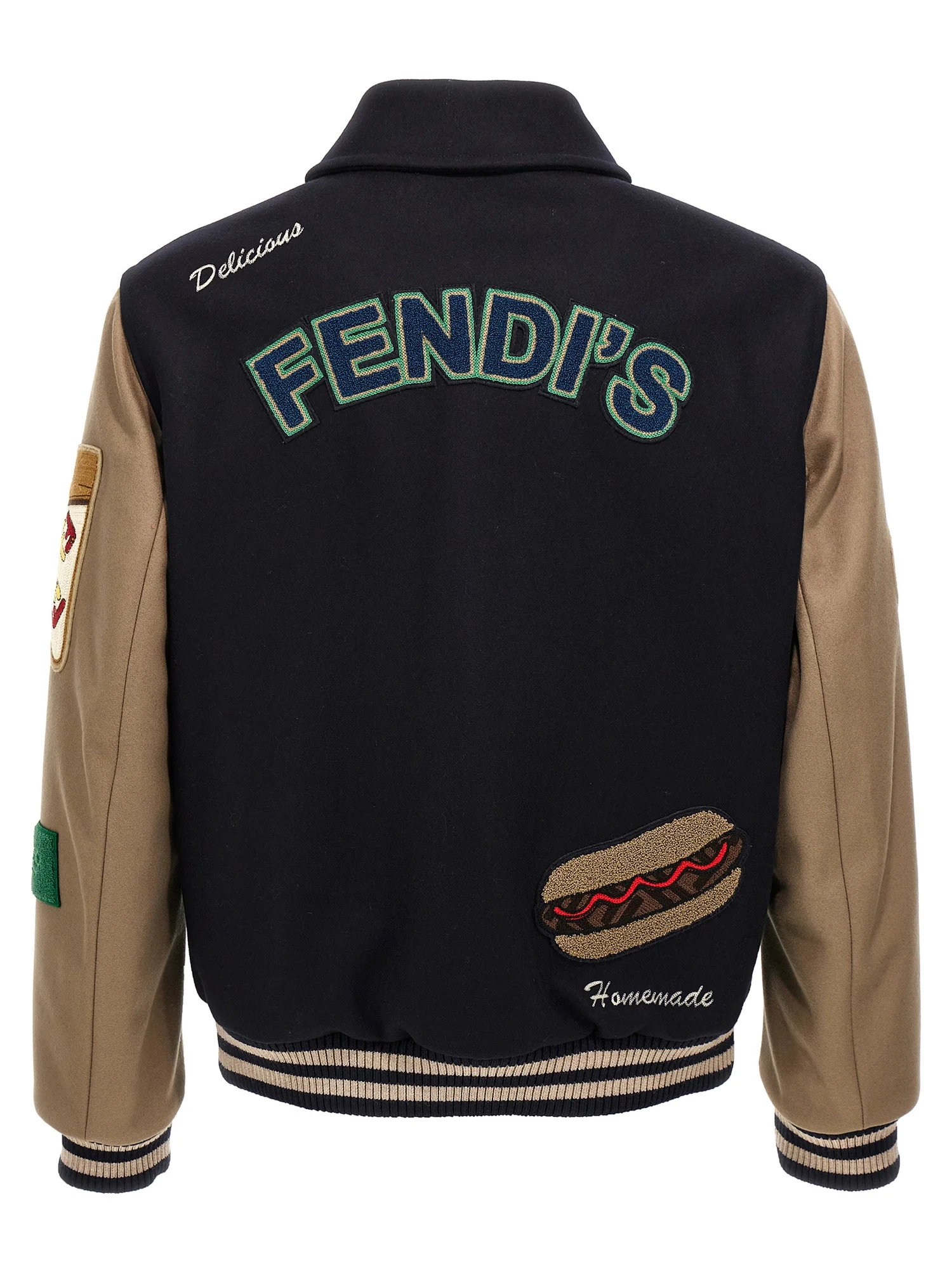Fendi Wool Bomber Jacket with Appliqué Logo – Luxury College Style