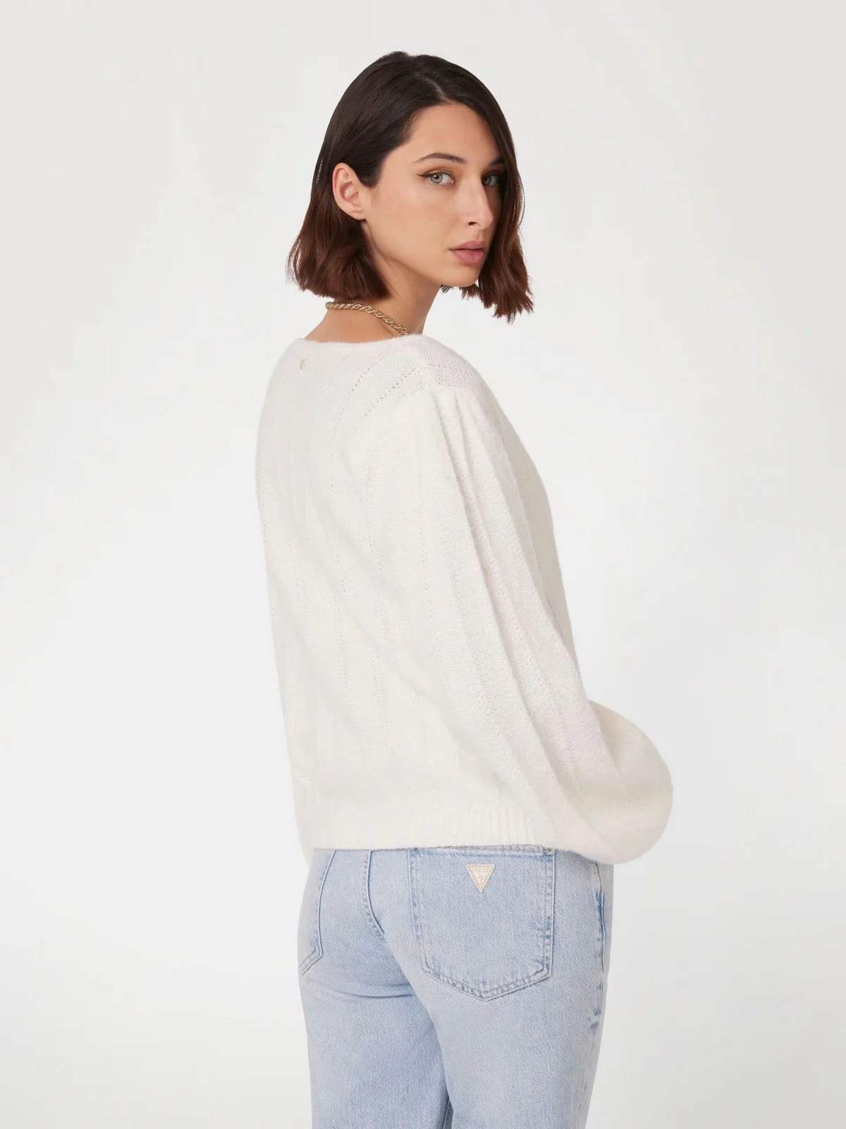 Guess Women’s White V-Neck Knitwear Sweater – Fall/Winter Collection