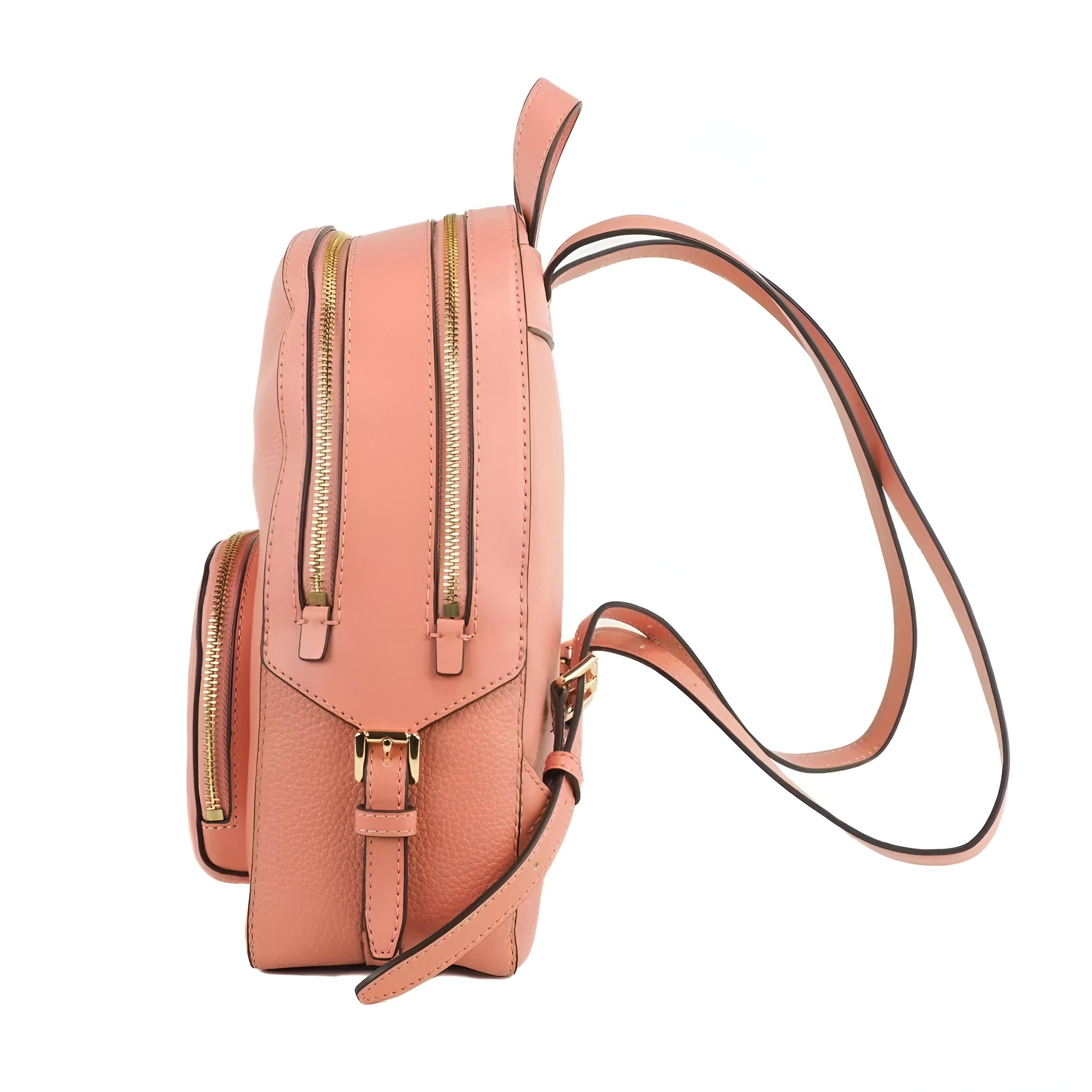 The Michael Kors Jaycee Medium Backpack is the perfect blend of practicality and style. Its spacious interior offers ample room to carry your essentials, from a tablet to your everyday necessities, while the sleek exterior adds a sophisticated edge to any outfit. The pebbled leather construction ensures durability and a luxurious texture, while the sherbet color brings a pop of fun and vibrancy to your day. Whether you carry it on your back or by the top handle, this bag adapts to your lifestyle with ease.