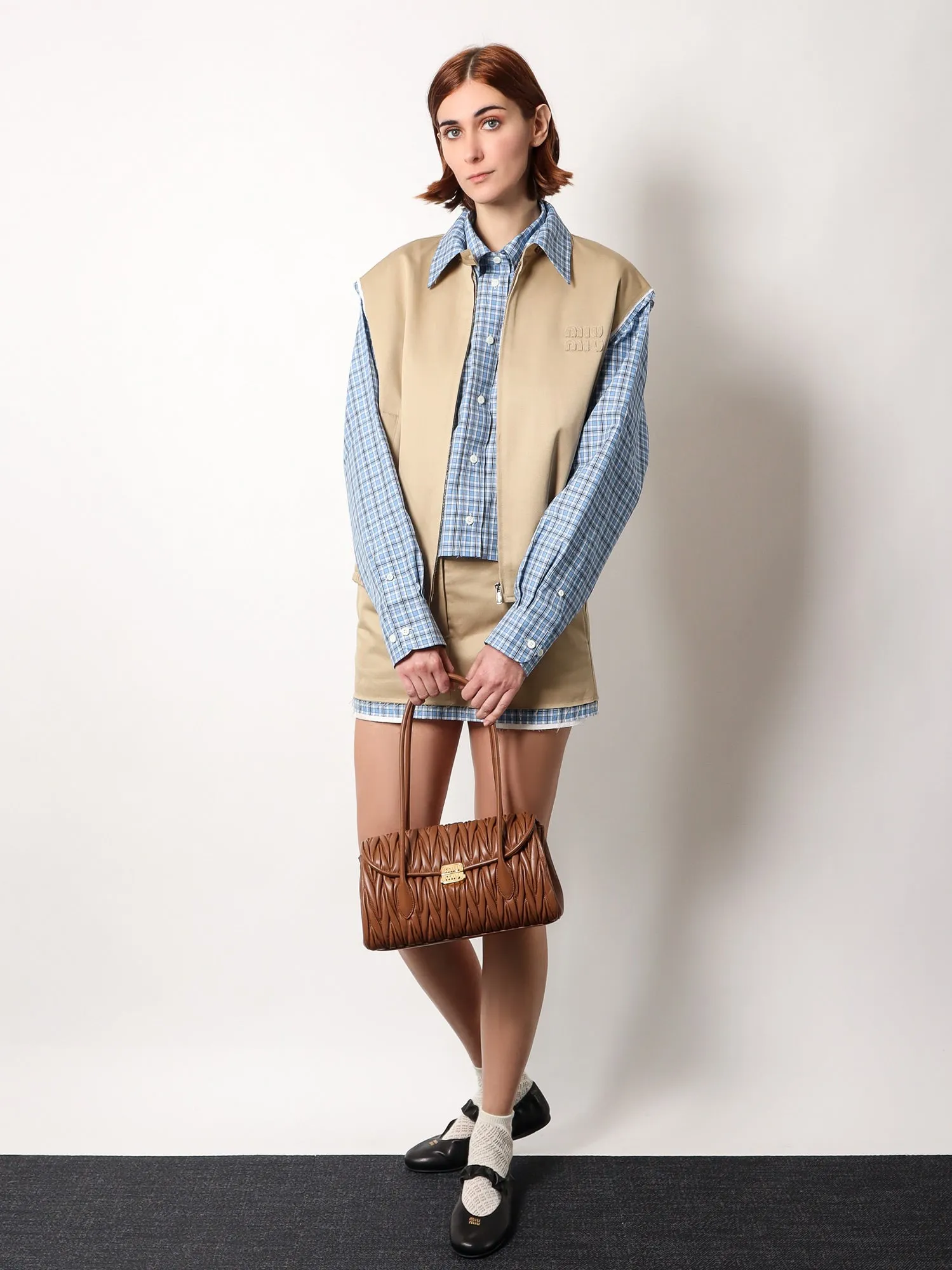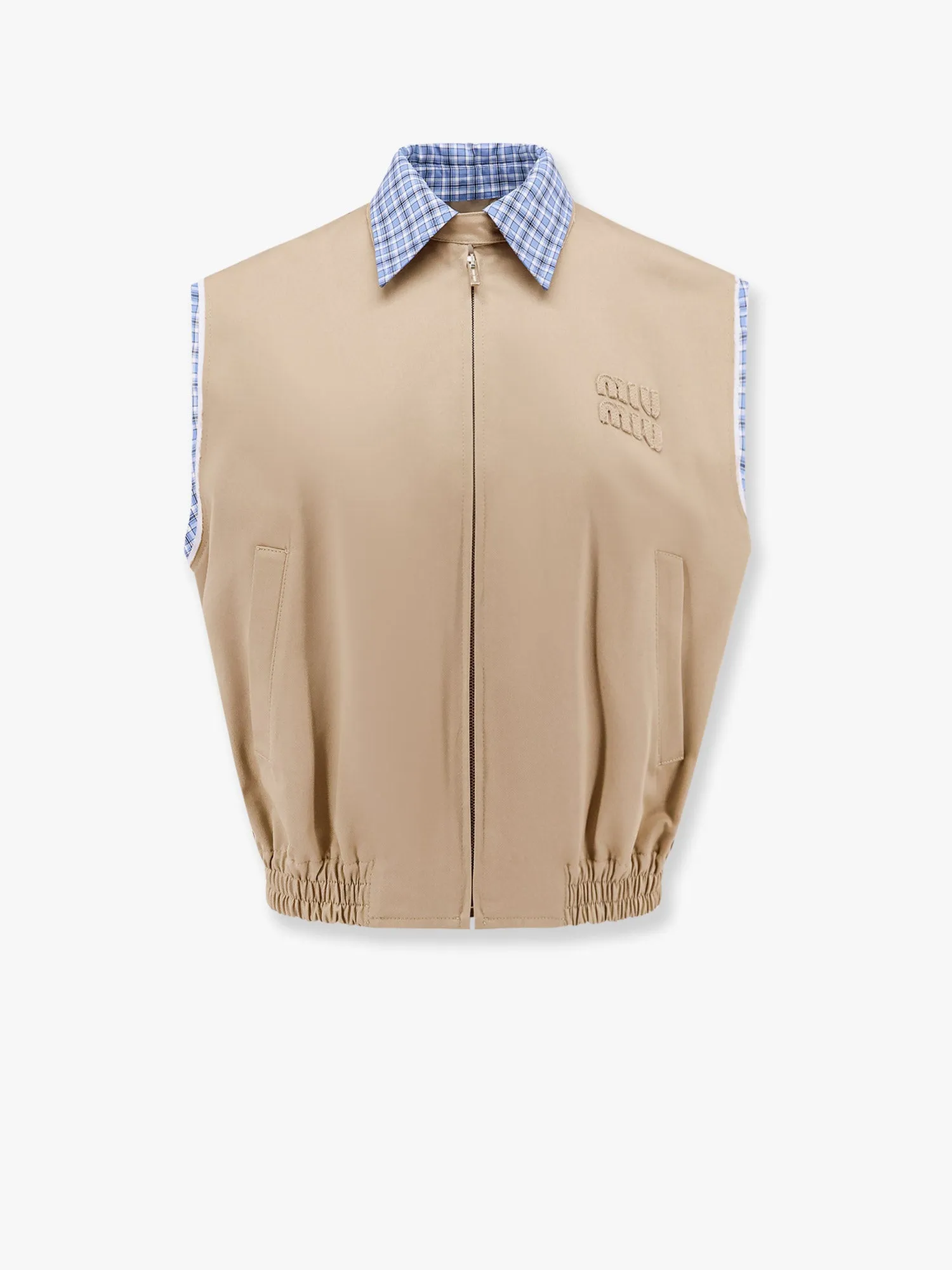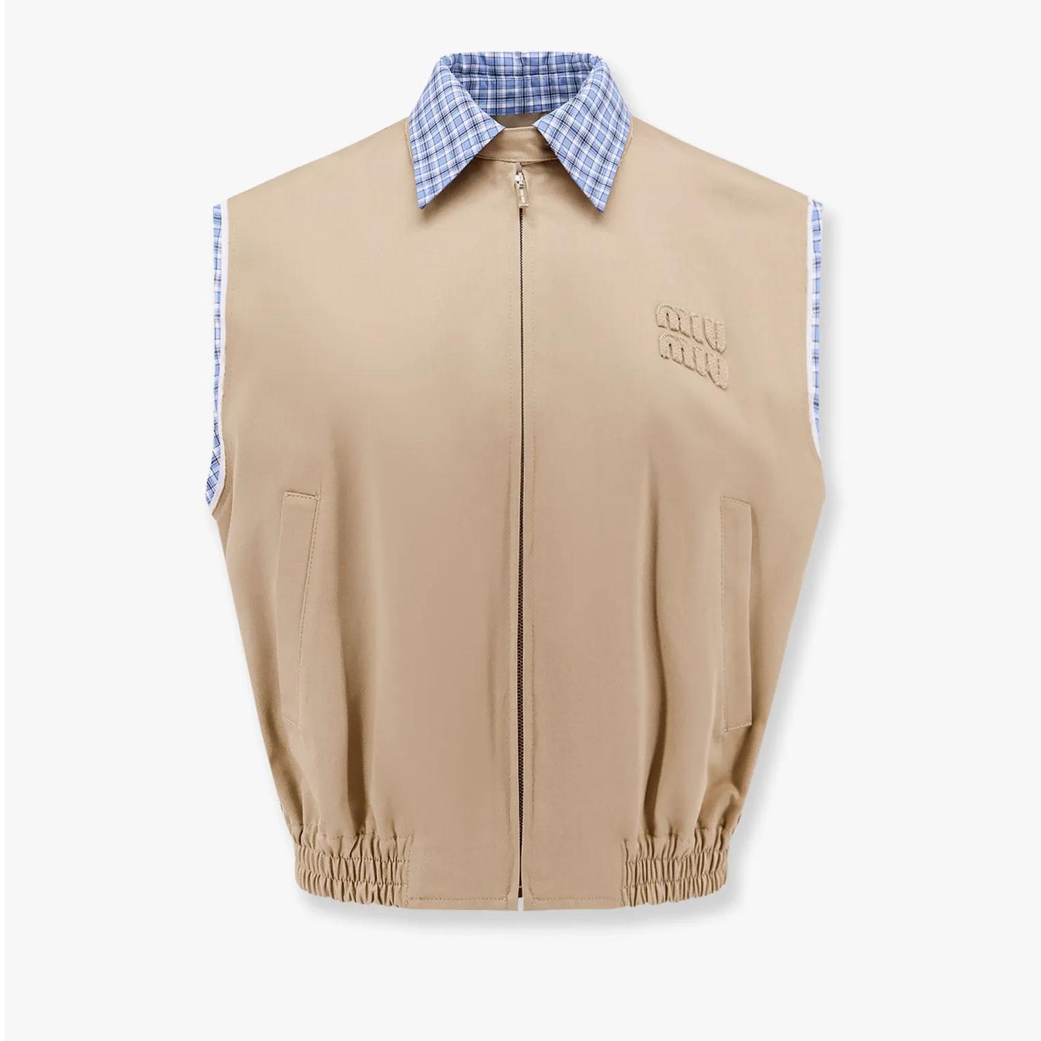 This Miu Miu vest jacket stands out for its unique blend of modern design and elegant touches. Its raw-cut sleeves and refined detailing ensure that you won’t just wear this piece—you’ll make a statement. The check cotton fabric adds texture and personality, making it easy to style with both casual and semi-formal outfits. Plus, the premium materials and expert craftsmanship ensure durability and long-lasting comfort.