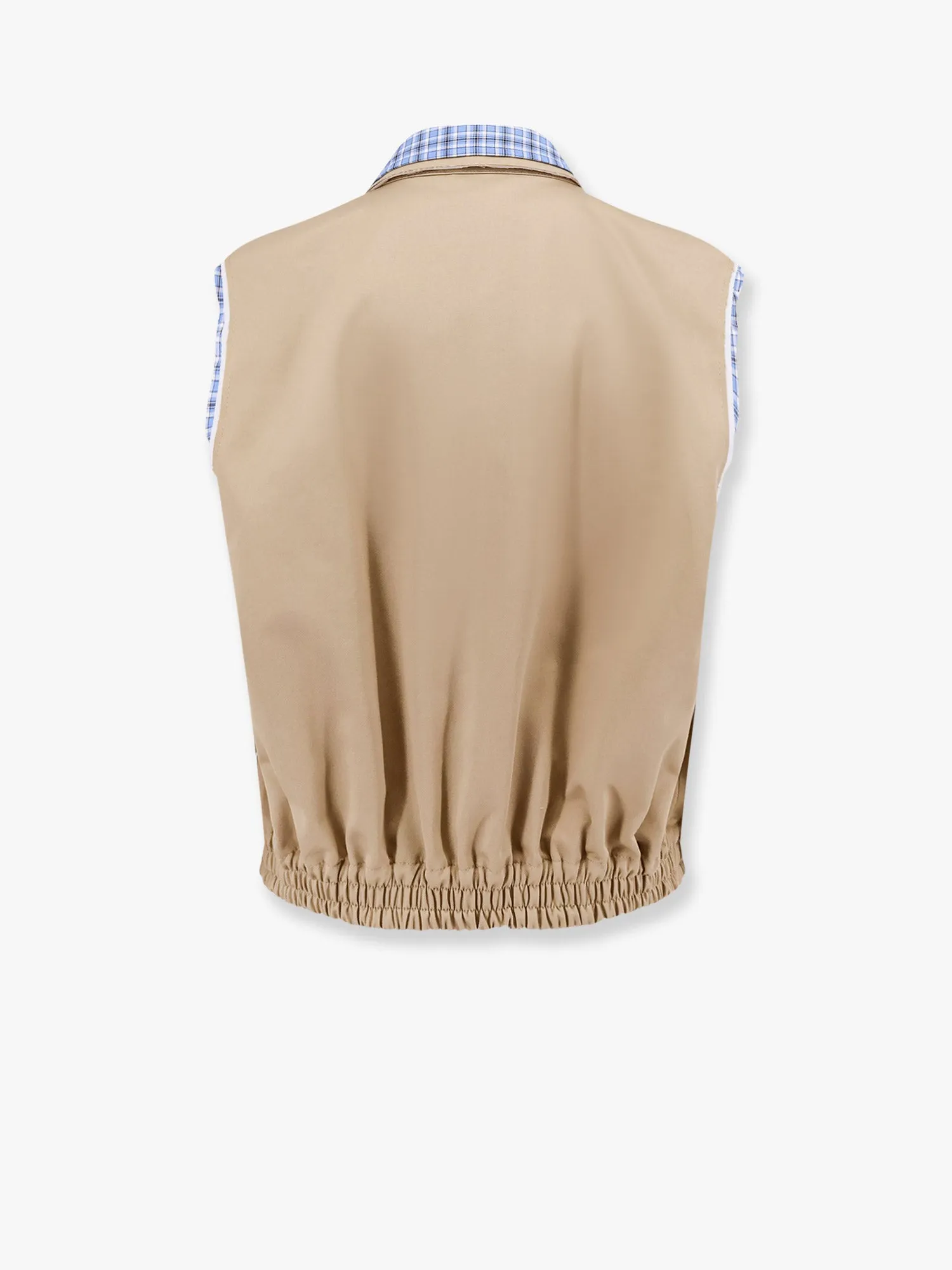 Don’t miss the chance to own this exceptional piece of Miu Miu craftsmanship. The Men’s Cotton Check Collar Vest Jacket is a statement of refined style and everyday versatility. Add it to your collection now and redefine how you approach casual sophistication.