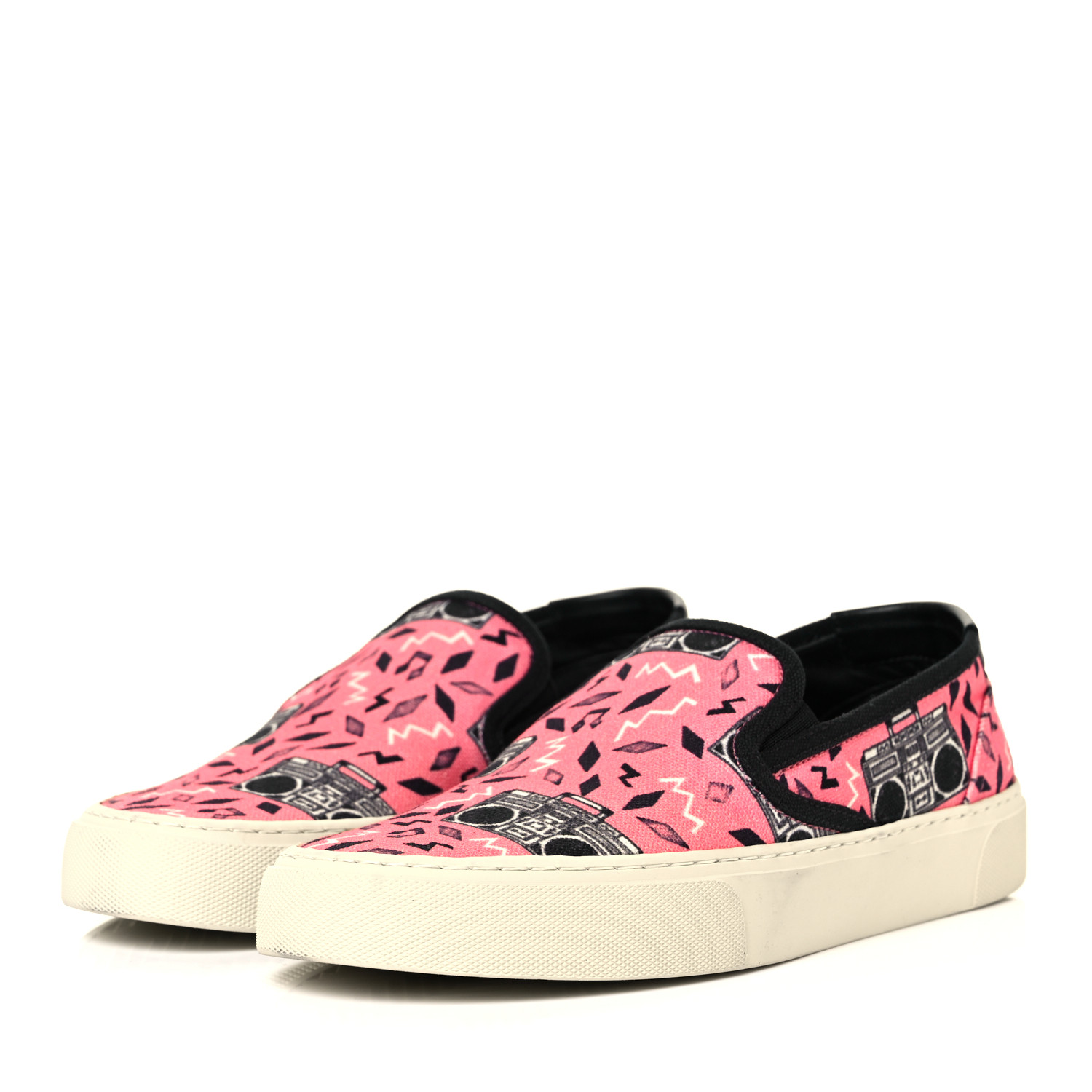 Don’t settle for ordinary sneakers when you can own a pair that embodies art, comfort, and fashion. The Saint Laurent Pink Canvas Slip-On with Radio Print is your ticket to standing out from the crowd while enjoying unparalleled comfort and durability. Slip into these trendsetters and transform any casual look into an unforgettable style statement.
