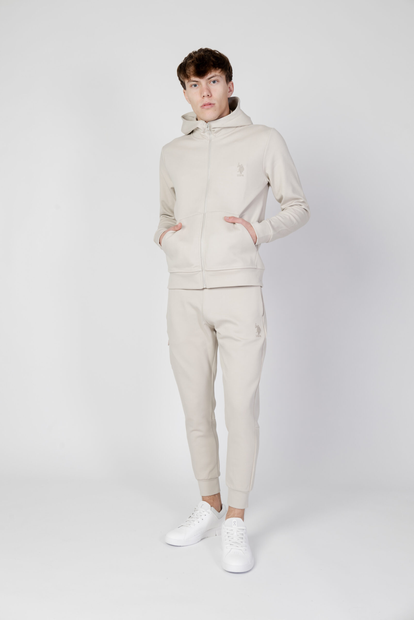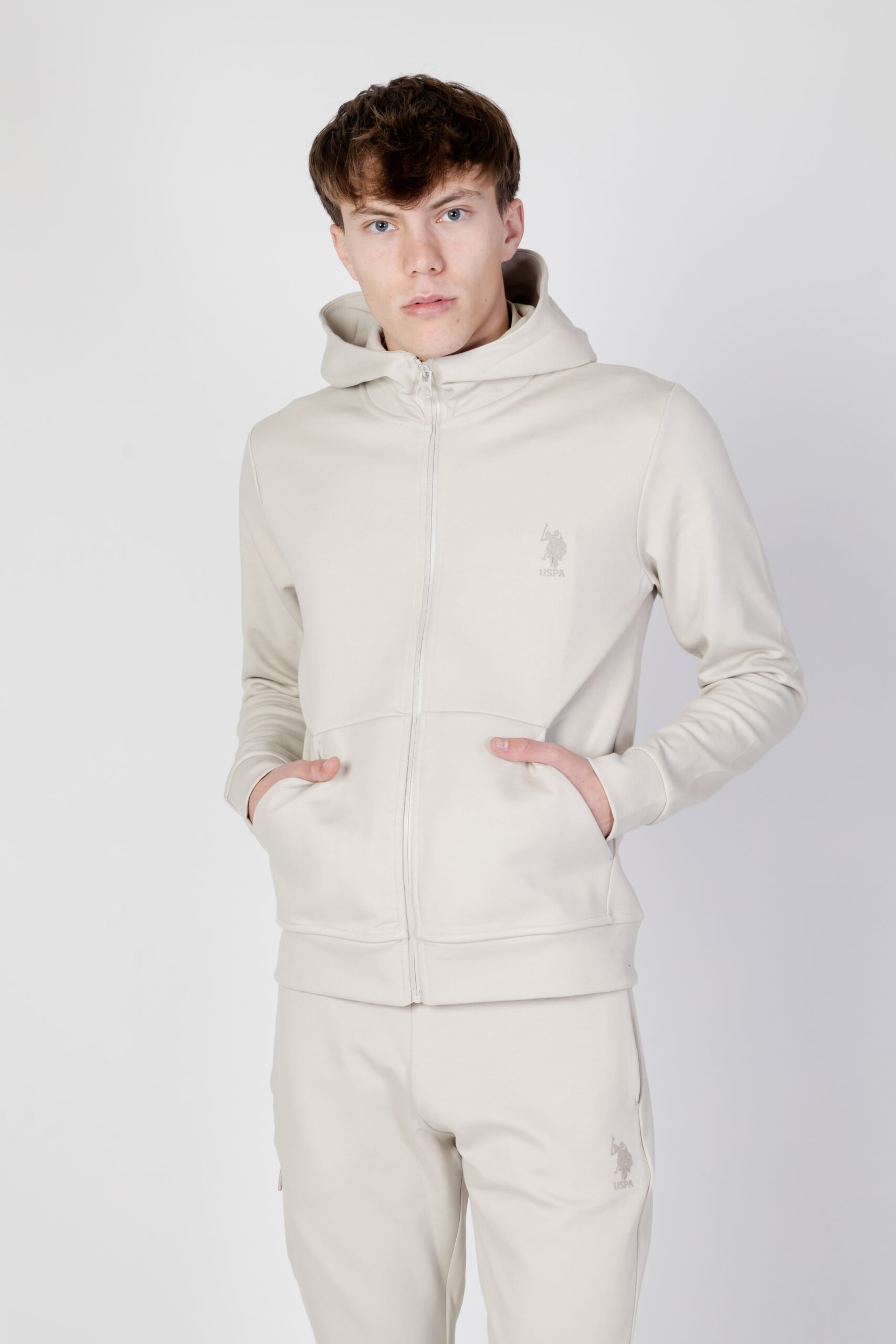 Stay Warm and Stylish with This U.S. Polo Assn. Beige Zip-Up Sweatshirt
