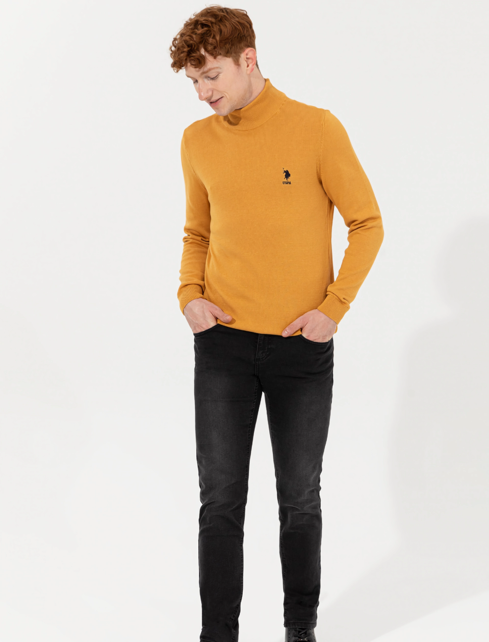 The U.S. Polo Assn. Men’s Orange Turtleneck Knitwear stands out with its premium blend of cashmere and cotton, offering unmatched softness and warmth. The vibrant orange color adds a touch of modernity, while the timeless turtleneck design ensures enduring elegance. Lightweight yet insulating, this knitwear is a versatile addition to any wardrobe.