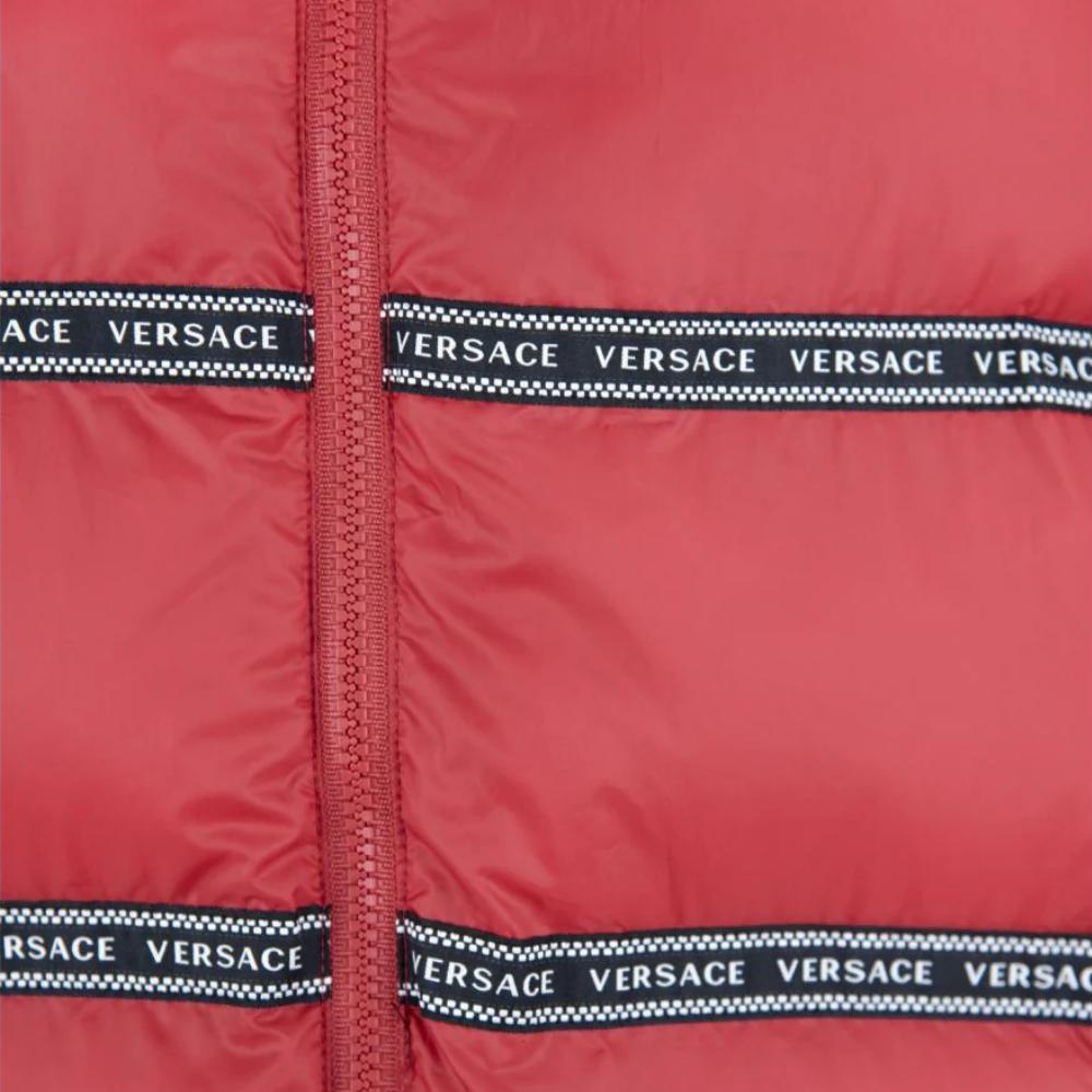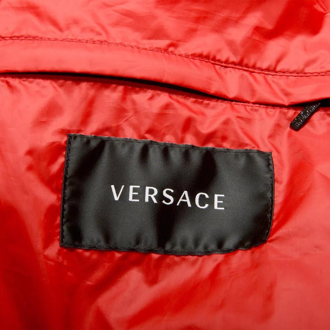 Turn heads wherever you go with the luxurious Versace Red Hooded Vest. Designed for those who love to make a bold statement, this vest is the perfect combination of style, functionality, and authenticity. Its vibrant red color, iconic black bands with white ‘Versace’ logo details, and premium materials make it a must-have for any fashion-forward individual.